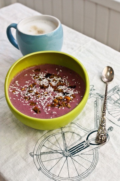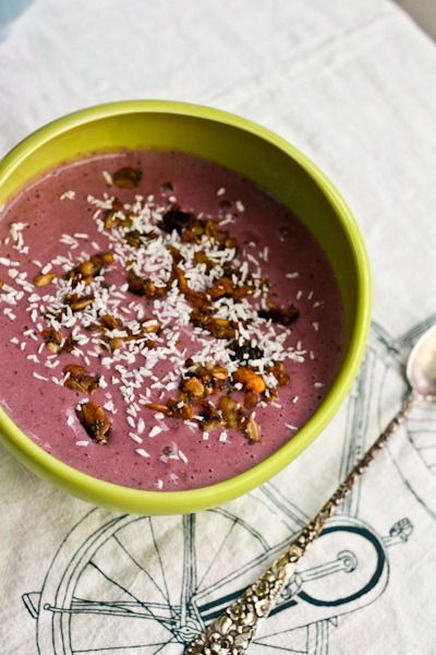 Love the green color of the bowl + the purple from the smoothie! It makes me think of summer… ahh how I miss summer!