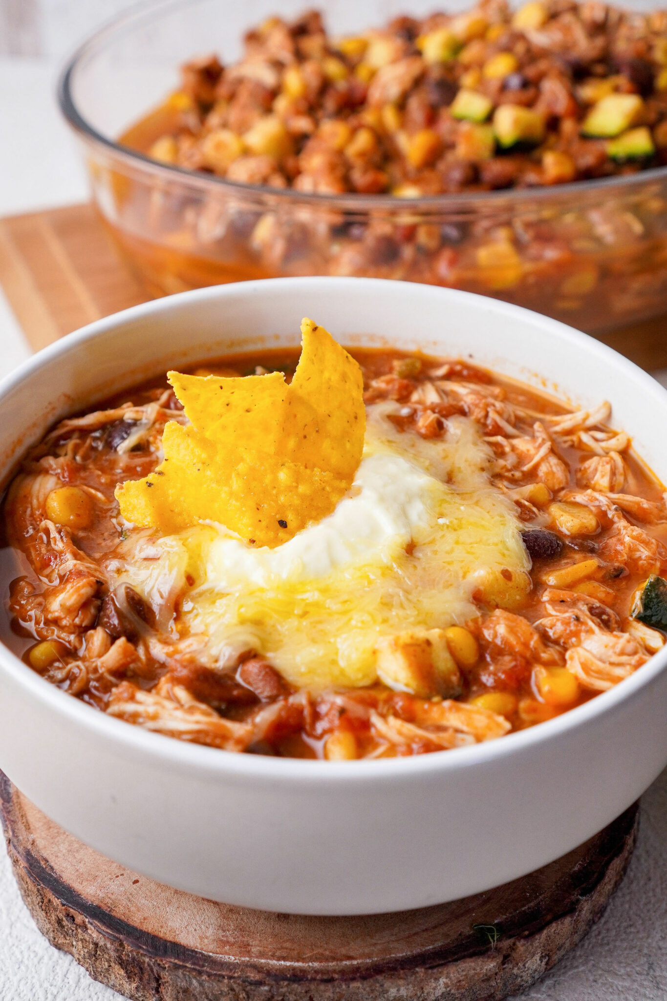 Serve with a dollop of sour cream, crunchy tortilla chips, and shredded cheddar cheese.