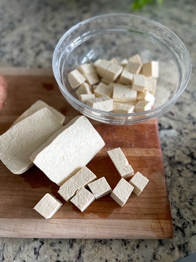 - Extra firm organic tofu – I like extra firm for easiest cutting.