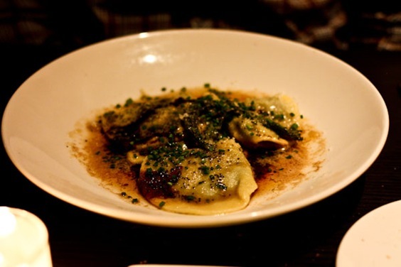 Matt ordered a la carte and started with Swiss Chard + Ricotta Ravioli in Brown Butter – yum!