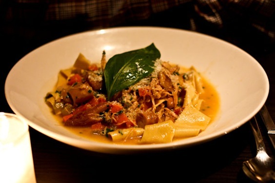 Matt’s entrée was a Pappardelle with Stewed Rabbit, Aromatic Vegetables and Truffle Oil. REALLY interesting flavors and really really good!