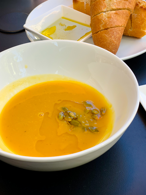I had butternut squash soup with brown butter and crusty bread (which satisfied every craving in my body!)