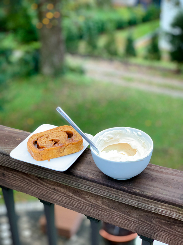 On Saturday morning we were all up early for Mazen’s soccer game. Great Harvest Pumpkin Swirl Toast + peanut butter yogurt (just plain yogurt with PB powder stirred in!) for a quick breakfast.
