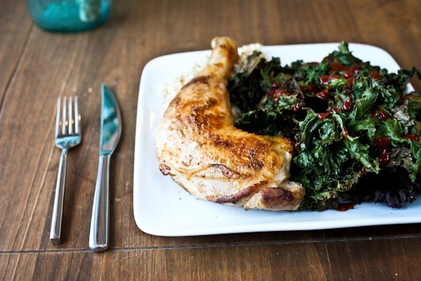 Love those greens and the chicken looks delicious. I have yet to make kale chips that turn out that good.