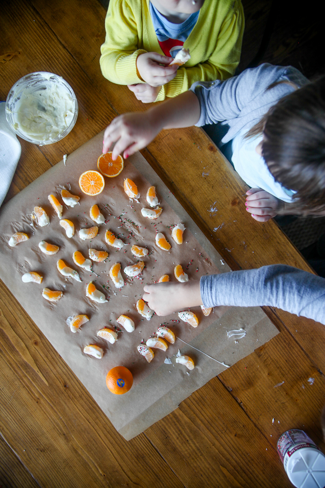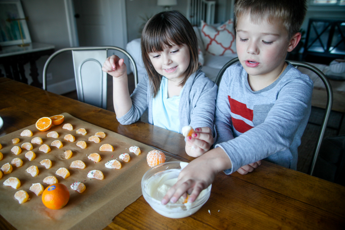 They LOVED dunking the Cuties into the chocolate. And quite a few segments got eaten right away!