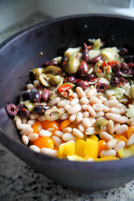 I added white beans to the mix to add some more protein and make it more of a meal salad, but you could also toss in cubes of chicken, shrimp or fish.