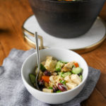 The base is a rainbow of veggies – cucumber, bell pepper, tomatoes. Mix and match your colors : )