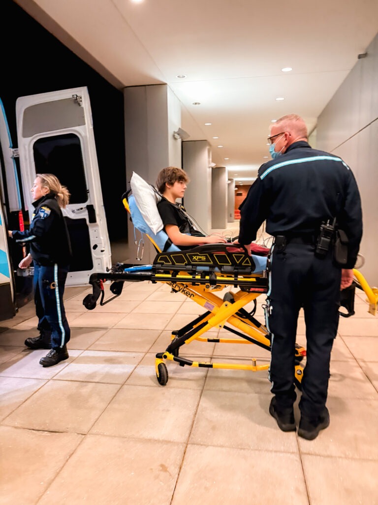 We made the switch in an ambulance, and I rode up front while he was in the back having vitals checked.