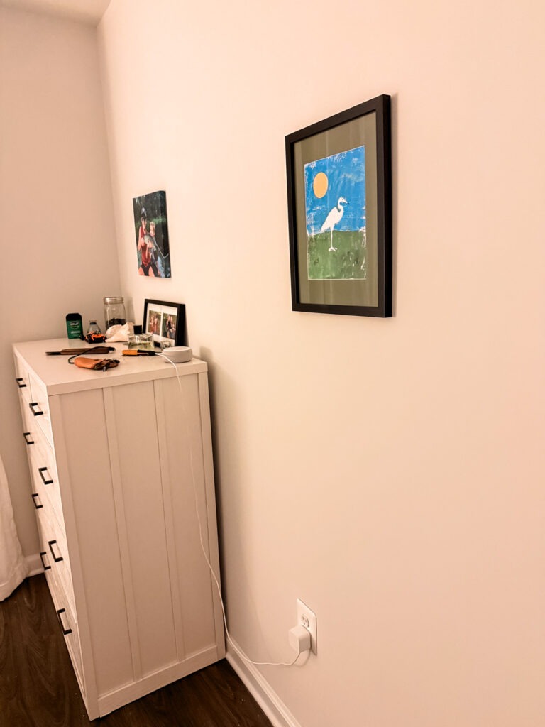We drove home on Tuesday, Dec 30, a few days later than planned, and immediately hung the Christmas art. One of Grammie’s paintings for Mazen, and a cool Darth Vader for B!