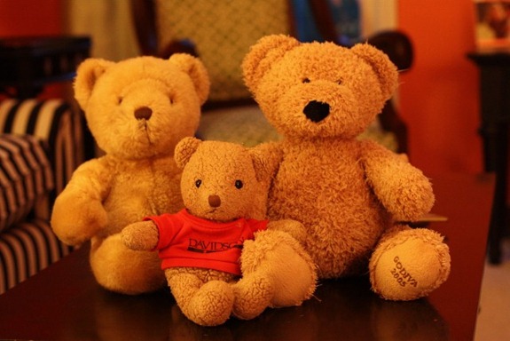 The bears look handsome. I wonder how you ever go them to sit so still.