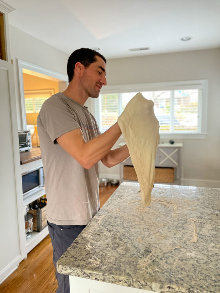Have a large baking sheet and grease with olive oil if you don’t have nonstick. Some cornmeal will prevent sticking as well.