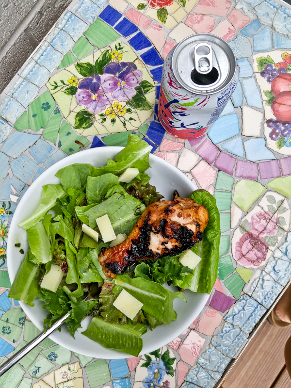 Matt and Mazen had chicken on the grill, which is what I had over a salad the next day. Greens were from the garden and the cheese was a super buttery manchego that I loved! The dressing was a basil-olive oil special – a mix I put together on the spot.