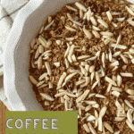 Inspired by all of my delicious coffee, I updated an old KERF recipe and enjoyed it all last week! All you need is half cup of strong coffee to add to a regular baked oatmeal recipe and the result was a latte flavor throughout and a crunchy almond topping.