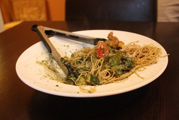 Mmm, the pesto looks delicious! I think that this meal would have been absolutely perfect with a delicate white wine. Mmm.