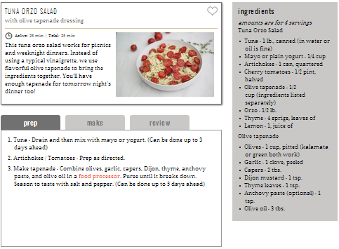 Yum! Some of those meals sound great – tuna orzo salad! chicken with olive tapanade! I’m going to bookmark this!