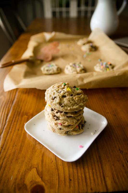 I debated looking for an oatmeal-and-nut-filled healthy “breakfast” cookie with no added sugar and wholewheat flour, but if I’m going to make cookies – a treat – I might as well go big or go home. I scoured the internet for “the world’s best cookies” and then, per usual, I ended up coming up with a recipe of my own based on the ingredients I had and my cravings. Let’s be honest, I was really just craving the dough!