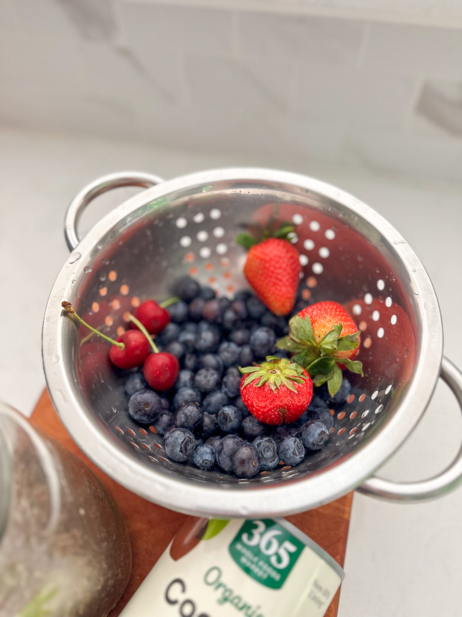 - 1.5 cups fresh fruit (berries are my go-to, but you can also use fresh or crushed pineapple, bananas, or stone fruits)