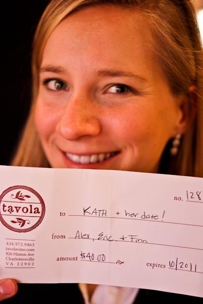 Plus, I had a gift certicate from our friends Eric + Alex + little Finn from my BIRTHDAY to use! That’s right, we haven’t had a free weekend since October to plan a romantic date night. It’s been a busy 6 months (my half birthday is April 26!) and while the bakery is sure to keep us busy, at least it will keep us planted in Cville.
