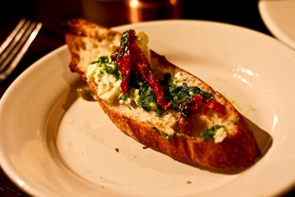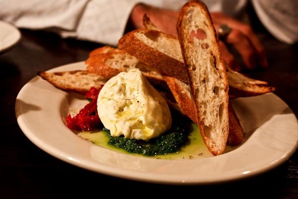 While we were waiting we had seen another table order this amazingly looking appetizer so we ordered it ourselves! It was a Burrata – a fresh Italian cheese made with mozzarella and cream – with a side of arugula pesto and sundried tomatoes. Incredible!!!!!