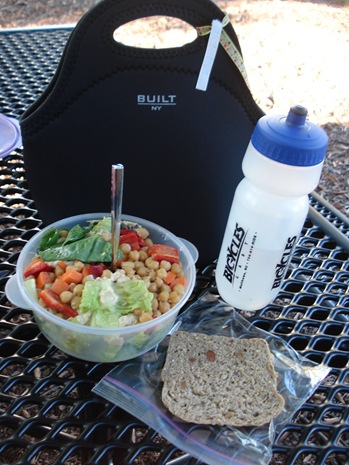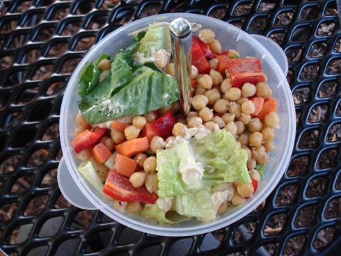 I made it to campus with about 25 minutes to eat. I packed a great salad for dinner!! It was fabulous – and the hummus was the star: