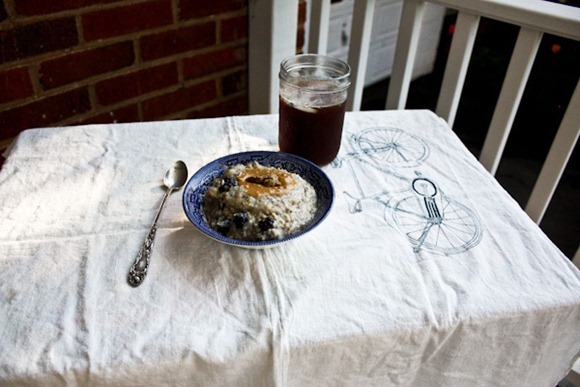 Those oats sound awesome – I started out back in the day with old fashioned rolled oats, then went to Bob’s steel cut, and am now a committed fan of scottish oats due to fluffiness but mostly due to quick cooking (I do miss the crunch of steel cut though). I love the bycicle linen in your photo – where did you get it?