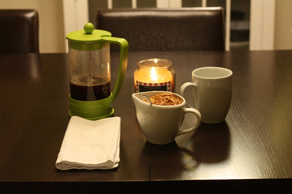 I see Ashley put oats in this cute clear measuring cup and as I was sorting my cabinets yesterday I found our Pottery Barn sugar bowl and creamer we got as wedding gifts. I love how sturdy these guys are. Thought it would make a cute bowl!
