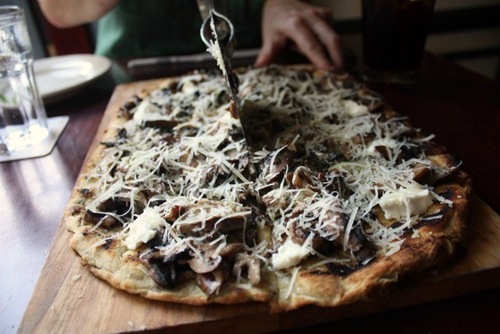 We thought we were getting a tiny flatbread, but this guy was huge! Huge meaty mushrooms, creamy goat cheese, parmesan – it was incredible!!