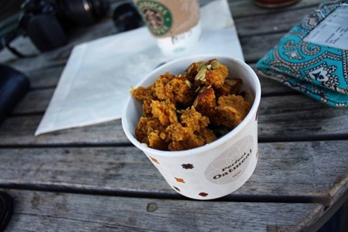 At The Bux, I got a Misto with 1 pump pumpkin and the instant oatmeal – with a pumpkin bread crumble!