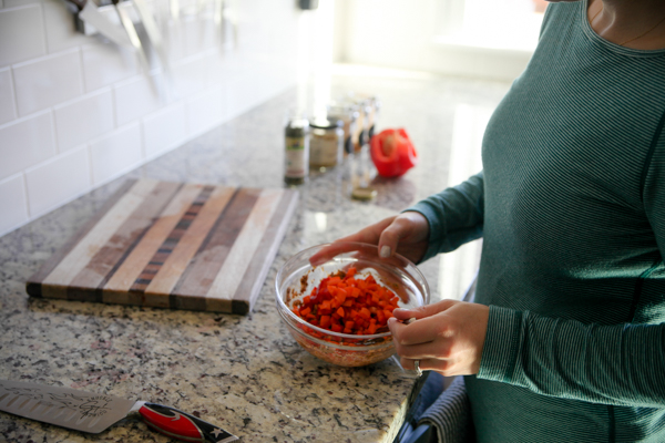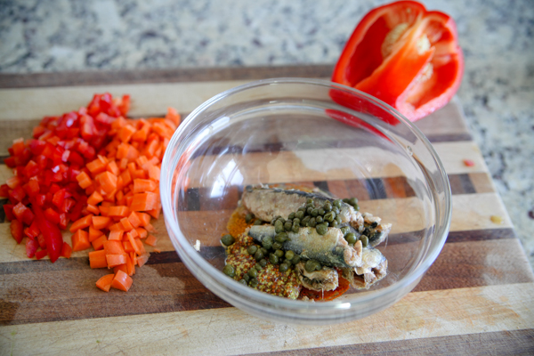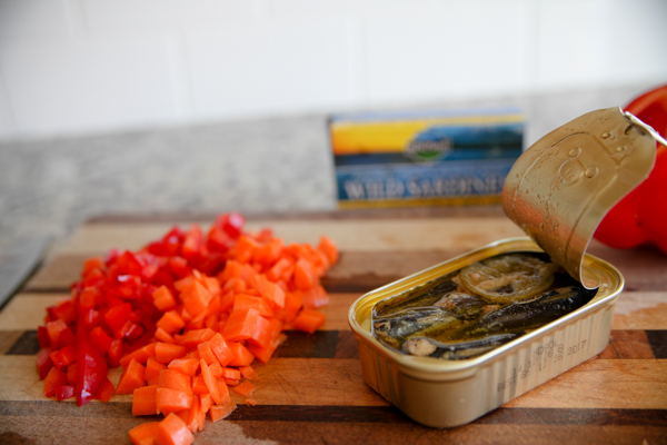 Start with one tin of sardines and a chopped carrot and 1/4 a bell pepper –