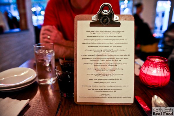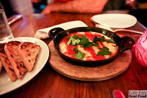 The menu is full of small plates – or what I’d rather describe as “large appetizers.” We chose 4 dishes to share along with half a carafe of wine (LOVE wine in carafes!)