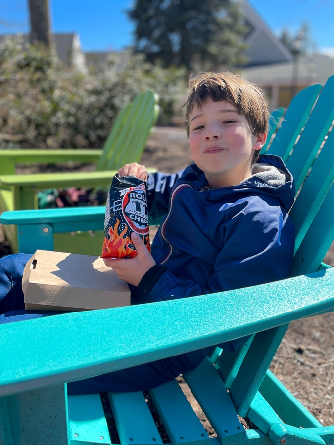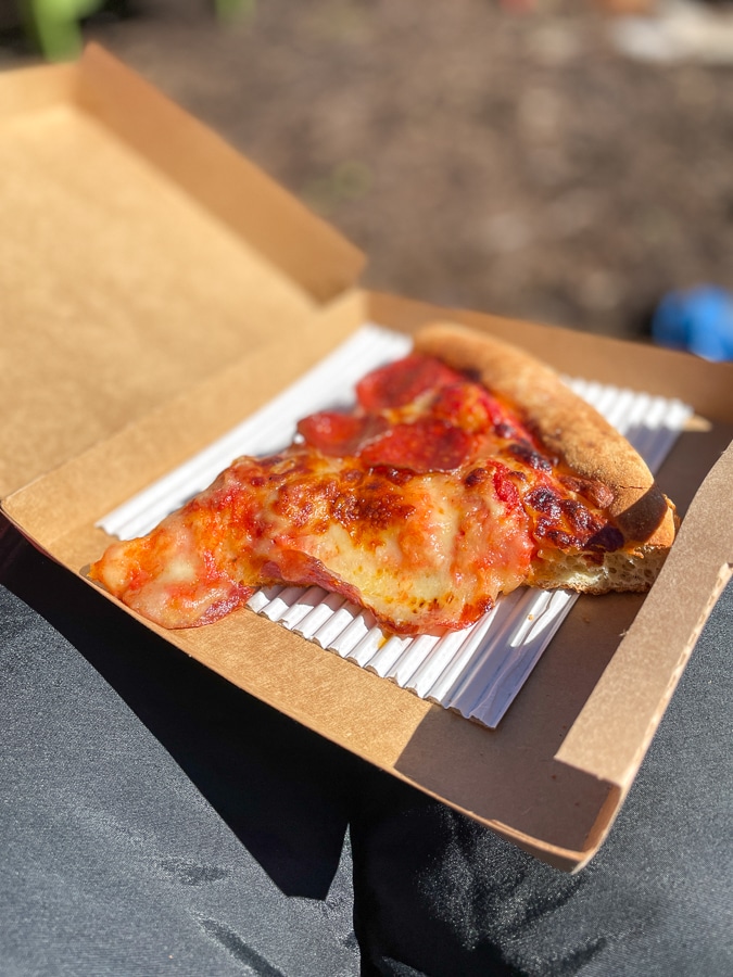 Thomas told me from their last day trip to Wintergreen February there was a pizza window, so we planned on that for lunch. It was pretty good pizza after working up a nice appetite!