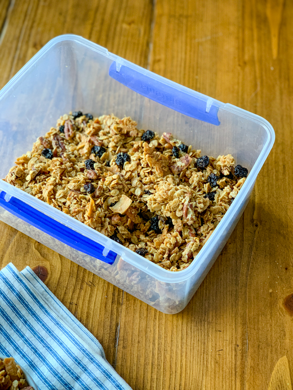 - Add dried fruit and store in an air tight container.