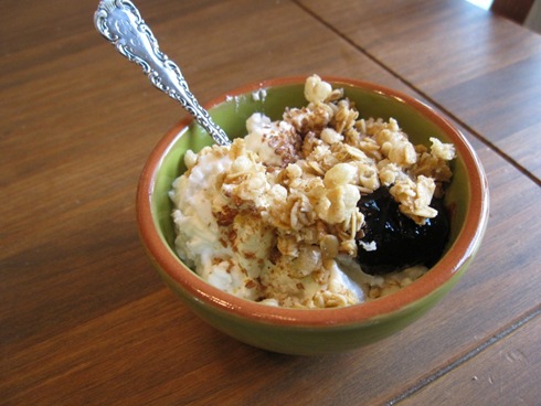 I had an afternoon snack of cottage cheese, AgavePlus granola, blackberry jam and flax around 5:00. Yum!