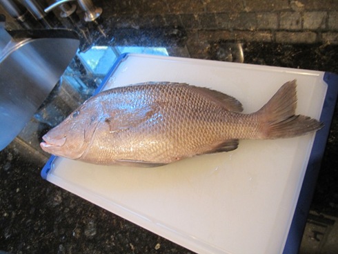 My husband is an ichthyologist (crazy fish biologist!!) and he said it looks like some kind of snapper but couldn’t be 100% sure without looking at the mouth…whatever that means!! 🙂 Glad you got it cleaned…it looked quite delicious!