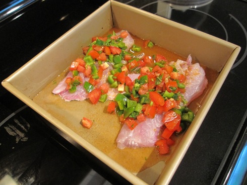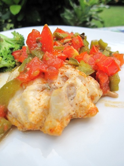 The recipe ROCKED!!! I will definitely use these toppings again. Tomato, green pepper, olive oil, creole, LEMON, BASIL, TABASCO – great combo!!