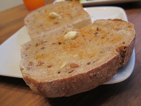 We never have the time or energy to make a whole grain side dish (and usually the entree and veggies fill me up fine). Tonight Matt toasted up some Sourdough Seed bread for himself to have on the side and he shared, so I had about half of one of these guys –