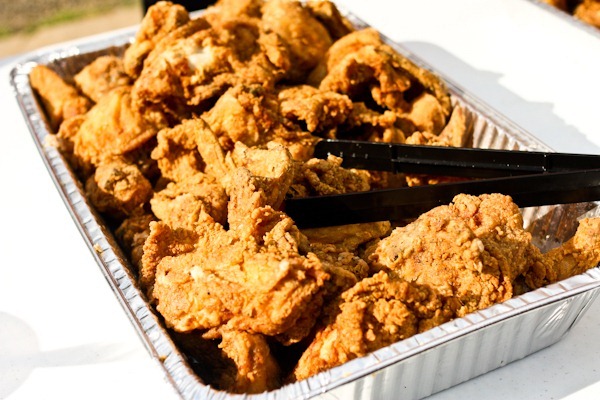 I enjoyed a plate of salad, kale salad, wheatberry salad and a drumstick of fried chicken.
