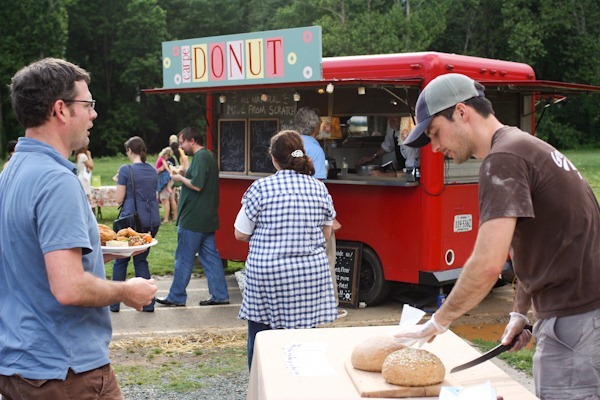 Matt and I had the honor of attending a garden + music festival at Buford Middle School this evening and slicing bread as one of the food donors of the event.
