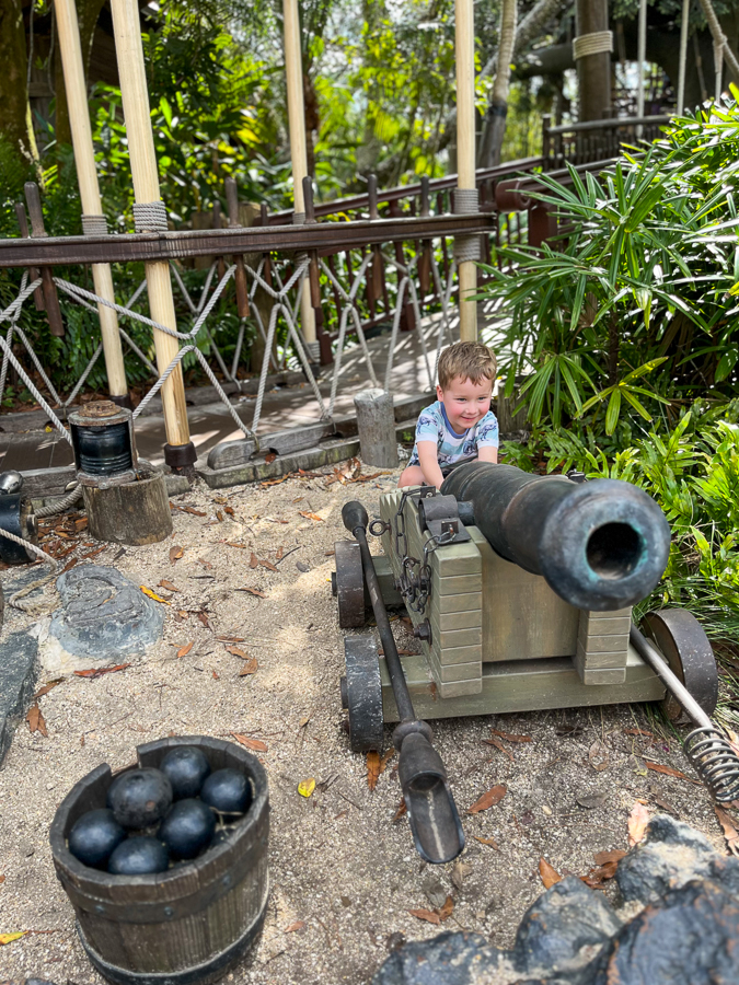 While we waited for our next G+ reservation, we went through the Swiss Family Robinson Treehouse. I wish this had been a bit more interactive instead of just a walking path. The boys liked it! Birch especially loved the cannons outside.
