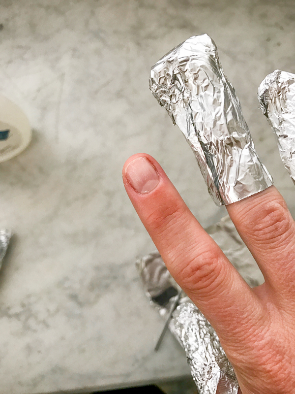 5. At this point remove the foils by sliding them off (so you can re-use them on the other hand!) and use a cuticle pusher to gently scrape the gel off.