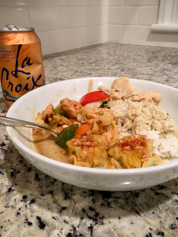 We got Thai takeout last weekend for a change. Green curry is the best!! Plus some pork dumplings and a tofu dish.
