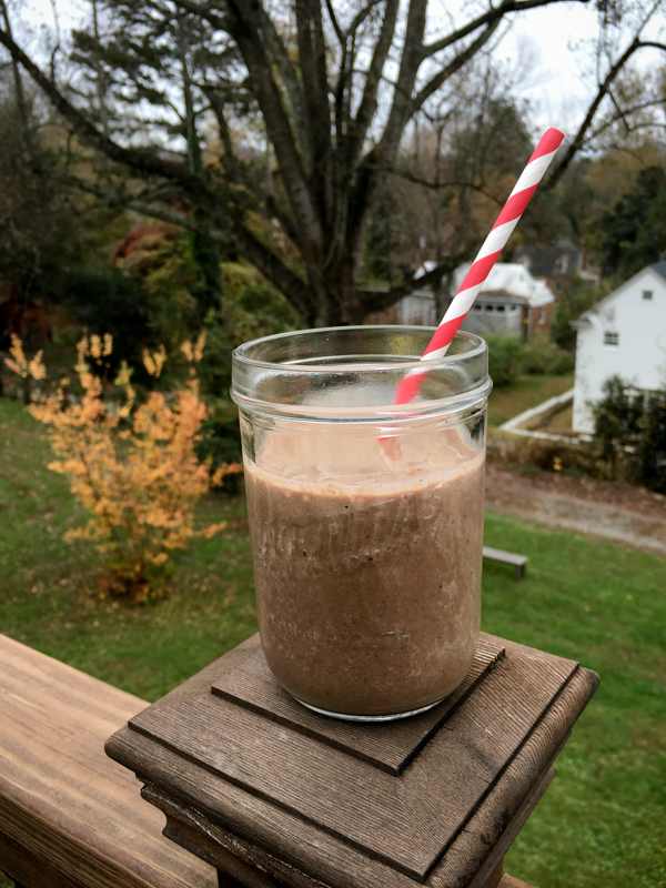 Breakfast smoothies were on the menu this week. I packed a lot of goodness into the blender – spinach, banana, frozen berries, milk, oats and chia seeds.