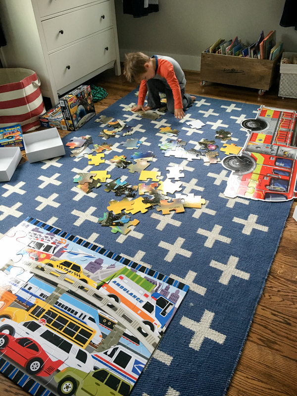 Last but not least, Mazen is obsessed with floor puzzles these days and they are the best!! They steal his attention for a good 30 minutes while he works on one. I bought him several of the Melissa and Doug ones, and he’s a whiz at all of them. We have the Map, Firetruck, Traffic Jam and Solar System. The Firetruck is the easiest and the Solar System has double the pieces, so it’s the hardest.