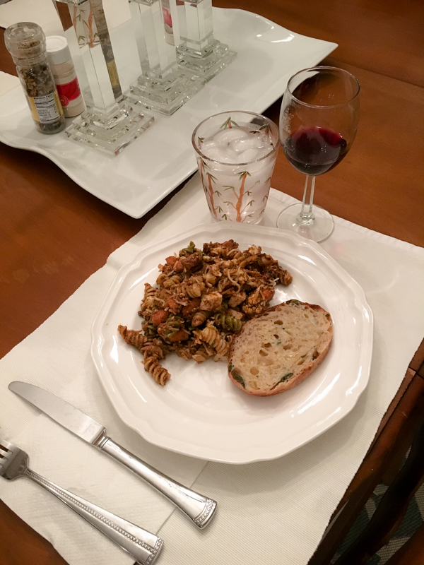 Sarah had us over on Tuesday night and made a Cook Smarts sun-dried tomato pasta and tofu dish. SO good!! Served with some toasted Olive Sourdough from the bakery.