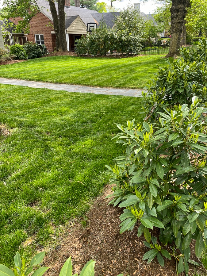 Our grass is glowing neon green again! How long do you think that will last this year? Last year we had a chinch bug infestation that turned it into thatch. Crossing fingers the neon sticks around this time! Thomas has been working so hard on it.