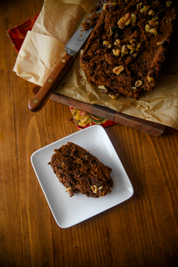 I also used canned pumpkin, walnuts, and chocolate chips, because all pumpkin bread needs a little chocolate. I wouldn’t call this “healthy” pumpkin bread, but it’s definitely made with a good amount of healthy ingredients.