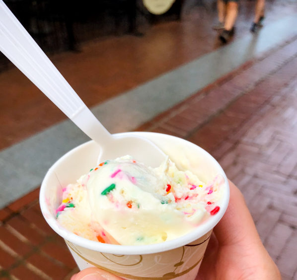 Because our favorite ice cream was calling our name a mere five steps away, we just had to. I just wanted one bite and ordered a kids’ size, which was still too much! Somehow I fit it all in though and was uncomfortably full through the show!