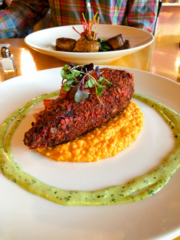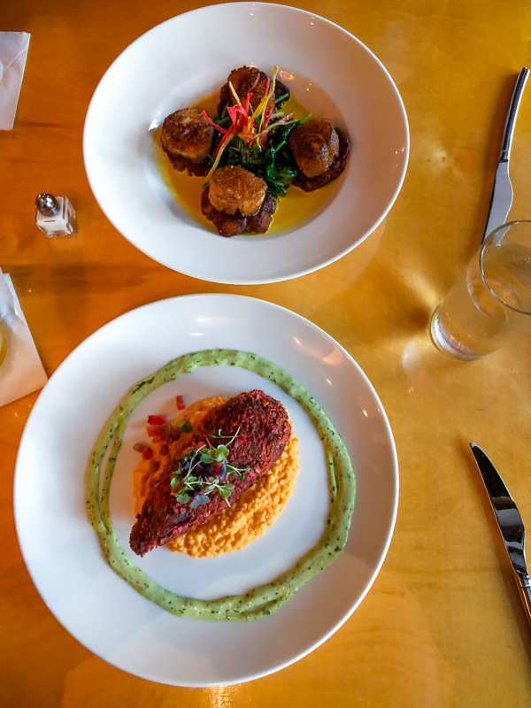 But we DID branch out away from our favorite salmon dish (which – gasp – they had changed up a little on the menu!) and got the scallops instead! So delicious with a carrot-vanilla sauce and smashed plantains underneath.