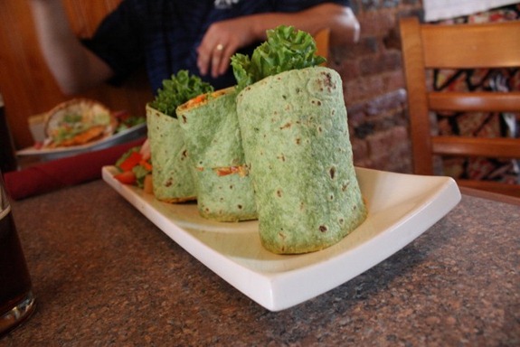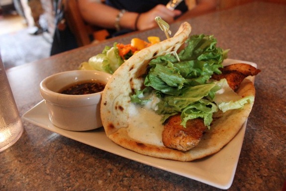 Larbs and I went halvsies on sandwiches…splitting the blackened salmon pita and a hummus wrap