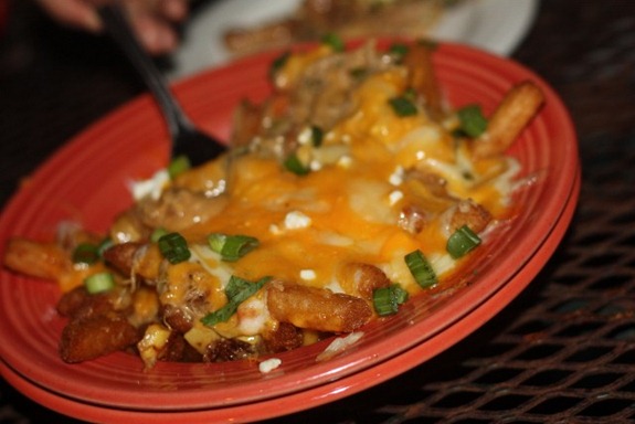 As an appetizer, we shared a platter of yuca fries smothered in some kind of mushroom sauce and cheese. OM Heavens